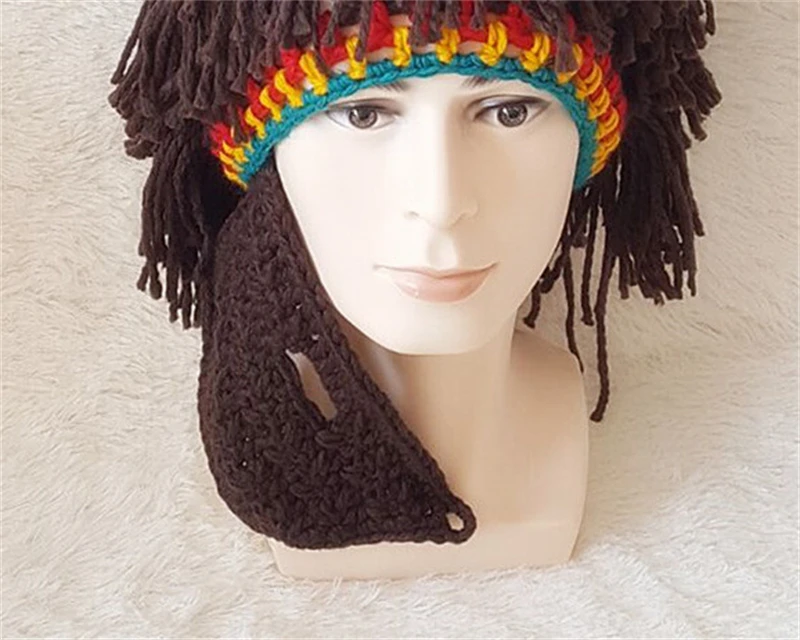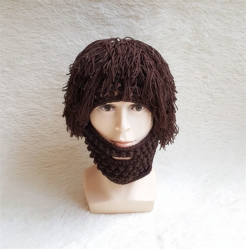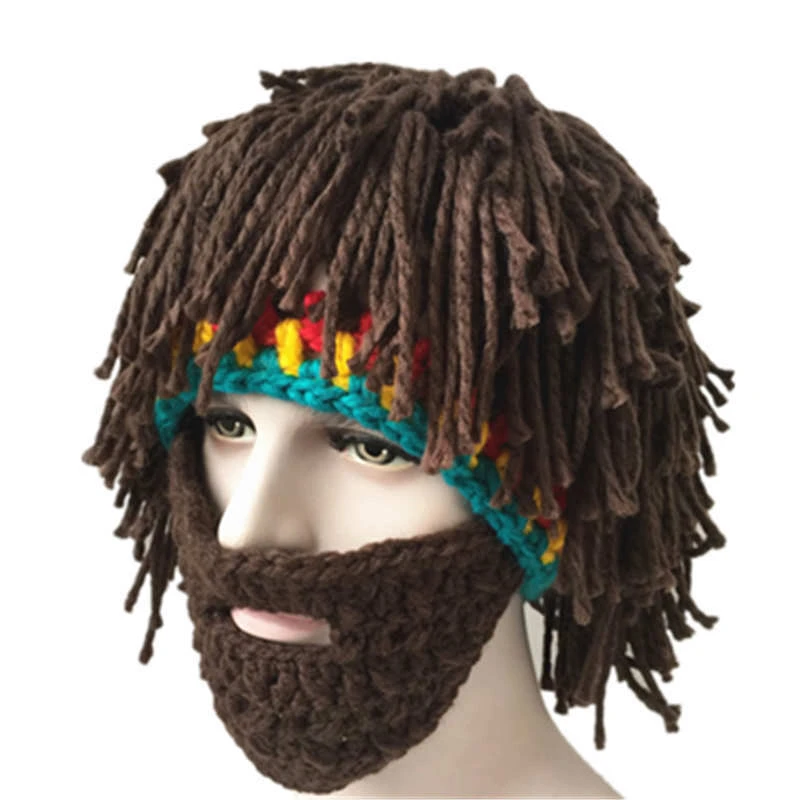 Funny Men Women Knit Bearded Hats Handmade Wig